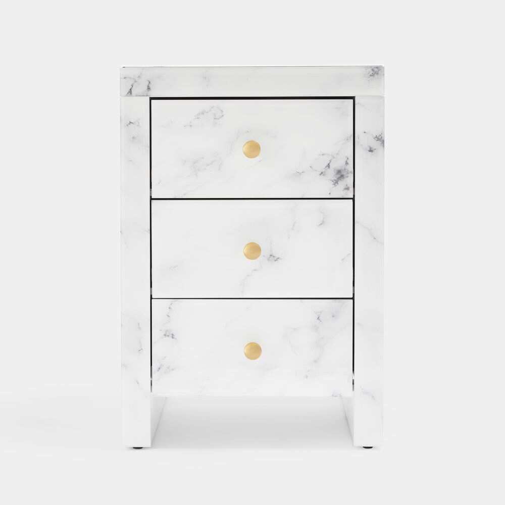 Our bedside table features a modern and sophisticated design, adorned with beautiful marble patterns that add a touch of luxury to any bedroom.