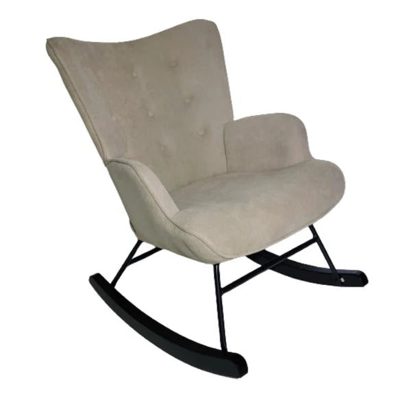 This rocking chair brings an understated and sleek style to complement your decor. The thick backrest offers plenty of comfort, along with deep cushioning that makes this a relaxing chair to sit in. Supported by a metal frame and wood legs, it adds elegance and strength as well. Such thoughtful design is very suitable for relaxing or babies' nursery, relieving your fatigue of the day effectively. The design of the rocking chair makes it fit every scene, no matter bedroom, living room, or office, it can decorate all the places perfectly.