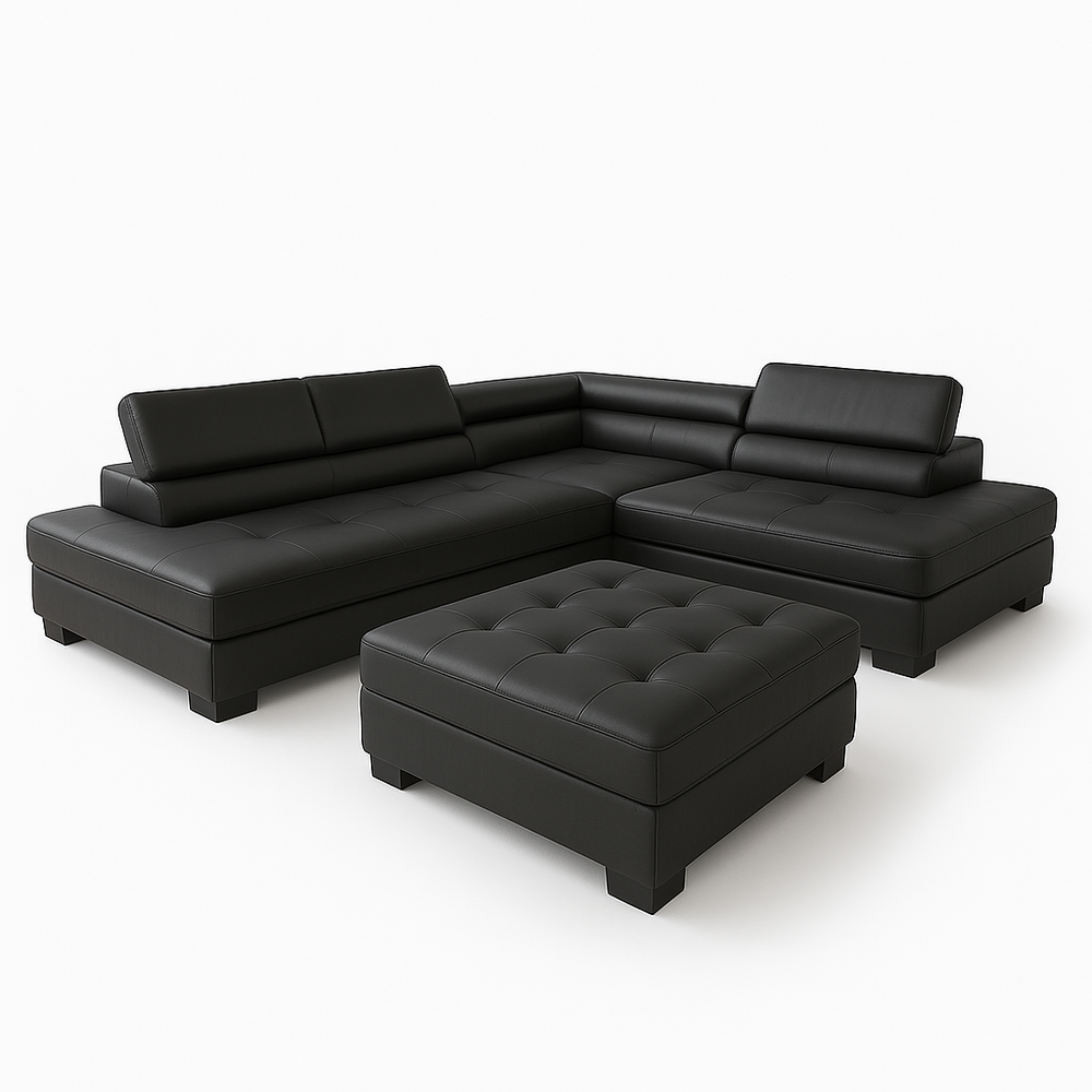 Contemporary at its best this sectional upholstered will fit perfectly in your living space. This two piece set features ratchet headrests , tufted design and sleek chrome metal base for a sleek finish.