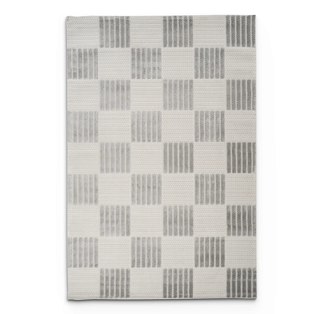 Add a sleek, modern aesthetic to your interior with the Delhi Mirel Grey Rug from the Delhi Collection. Showcasing a bold geometric checkerboard pattern with alternating striped and solid grey blocks, this rug is a perfect example of understated elegance. Designed to enhance any room with its refined grey and silver tones, it delivers both style and comfort. Whether placed in a lounge, office, or bedroom, the Mirel Grey Rug brings contemporary sophistication and everyday practicality to your space.
