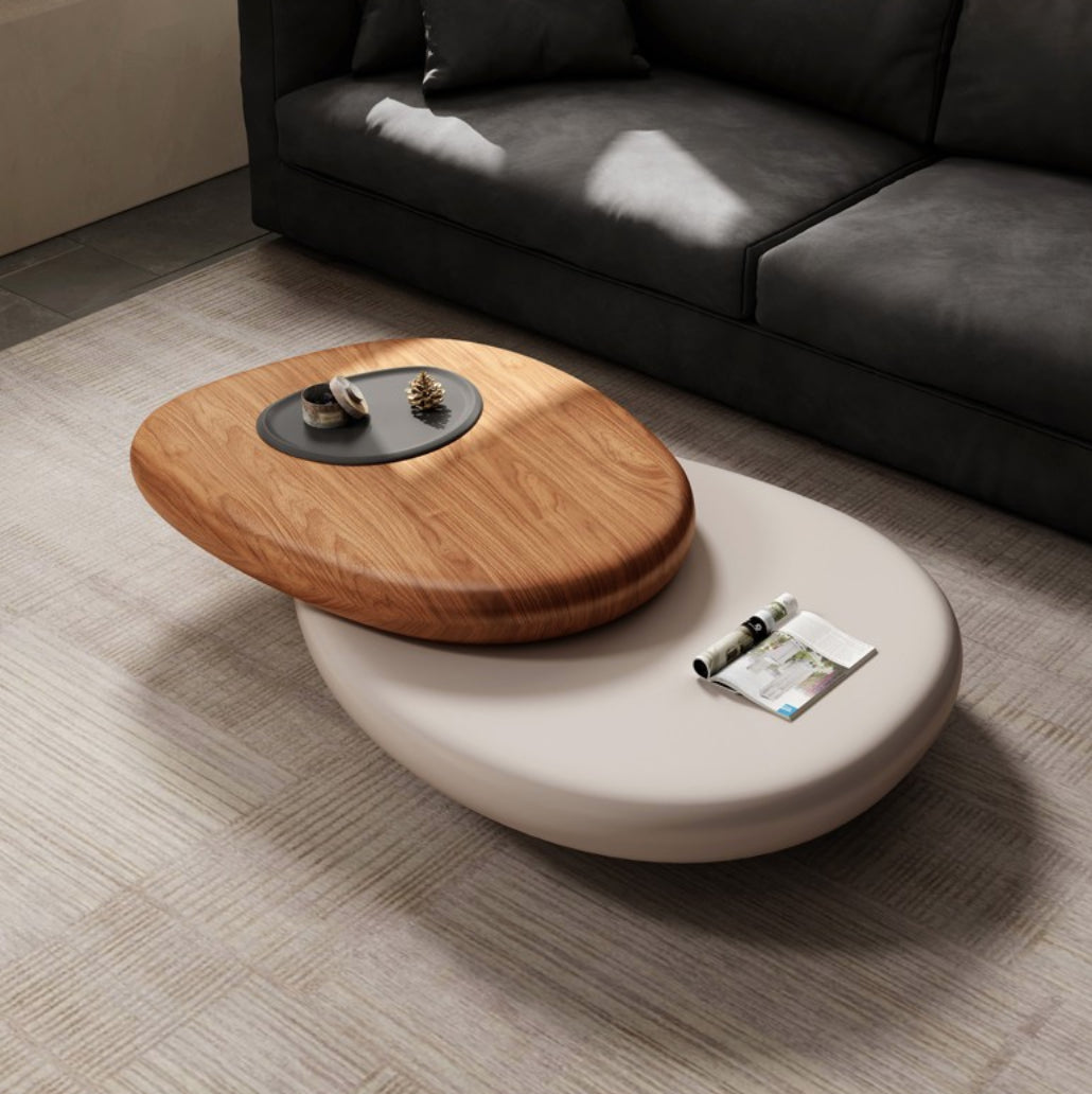 Crafted with a rich walnut wood veneer top and a smooth mirrored lower platform, the Becka offers both warmth and sophistication. Its irregular organic shape enhances visual flow while the rotating top allows you to adjust the layout for functionality and style. Whether entertaining guests or relaxing with family, this table transforms your space with elegance and creativity.