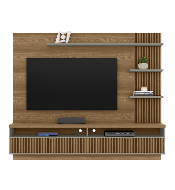 The Aruruna Tv Stand came to enchant! Its panel with slatted details makes your living room even more sophisticated, it has 2 tilting doors with gas piston and metal handle, niches for electronic devices and shelves for decoration. It has space for a TV up to 65”, and all the wires are hidden, making your environment more complete and elegant.