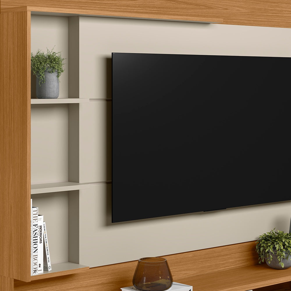 The Home Atlanta is perfect for making your living room elegant and sophisticated. For TVs up to 60 inches, it has two opening doors with beveled details, metal handles, a 25mm top, niches and shelves to display decorative objects and electronics. At six feet wide, it will make your living room even more complete and cozy.