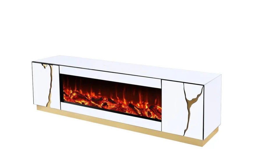 The Louisiana Luxe LED TV Stand with Fireplace blends modern elegance with advanced functionality, creating a statement piece for any living space. Its high-gloss finish, accented with bold golden vein-style details, exudes luxury while complementing contemporary interiors. The integrated LED fireplace adds warmth and ambience, with adjustable color settings to suit your mood. A remote control ensures effortless operation, while the generous surface and storage space keep consoles, décor, and essentials neatly organized. Available in striking black or sophisticated white with gold accents, the Louisiana Luxe series is designed to impress and elevate your entertainment experience.