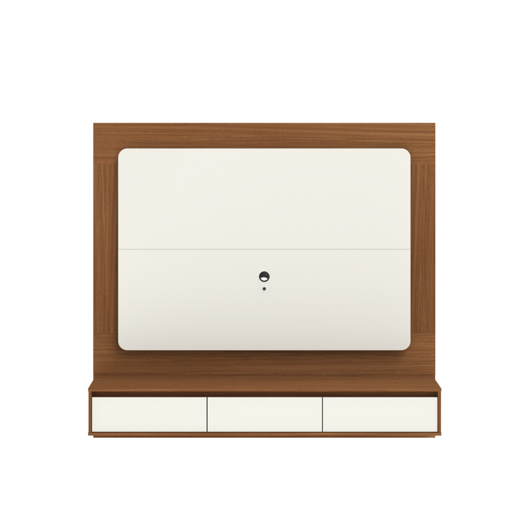 Elevate your living room with the Oslo Suspenso 2.2 Wall Plasma Stand. This wall-mounted unit features a unique overlapping design with a central panel that includes rounded corners and a wire management hole, ensuring a clean and organized setup. The stand includes a niche divided into three tilting doors, providing ample storage for electronic devices and everyday items, while leaving the top surface free for decorative objects. Crafted from reconstituted wood sheets and finished with high-resistance UV varnish, this stand supports TVs up to 75 inches or 55 kg, making it a practical and stylish solution for your entertainment needs