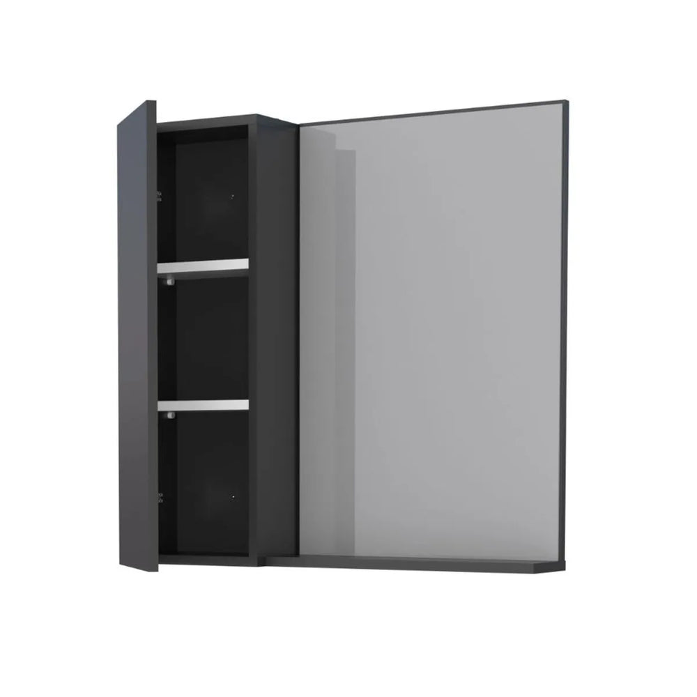 The Deera Bathroom Mirror with 1 Door offers a practical and stylish solution for your bathroom storage needs. Crafted with a sturdy wooden structure, it combines durability with a sleek design that complements modern bathroom interiors. Featuring one door and two spacious shelves, this mirror cabinet provides ample room to neatly organize toiletries, cosmetics, and other essentials, keeping your bathroom clutter-free. Its reflective surface enhances lighting and creates a sense of space, making it both a functional and aesthetic addition to your bathroom. Ideal for those seeking efficient storage without compromising on style.