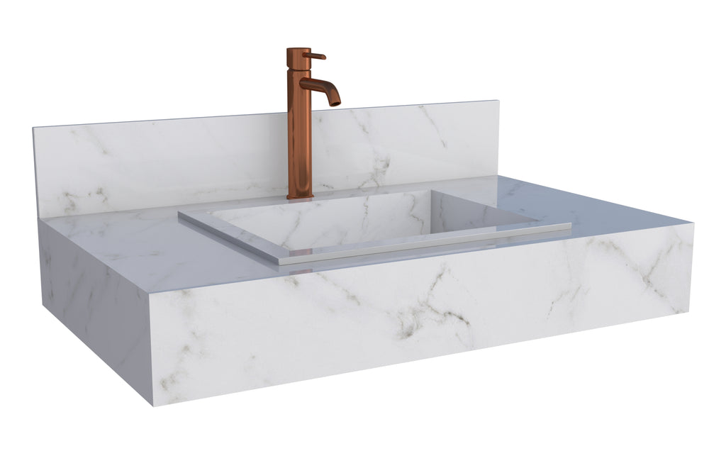 The Veneza porcelain countertop delivers sophistication at an affordable price. It has a sculpted sink, hidden valve with removable top and comes with a front panel.