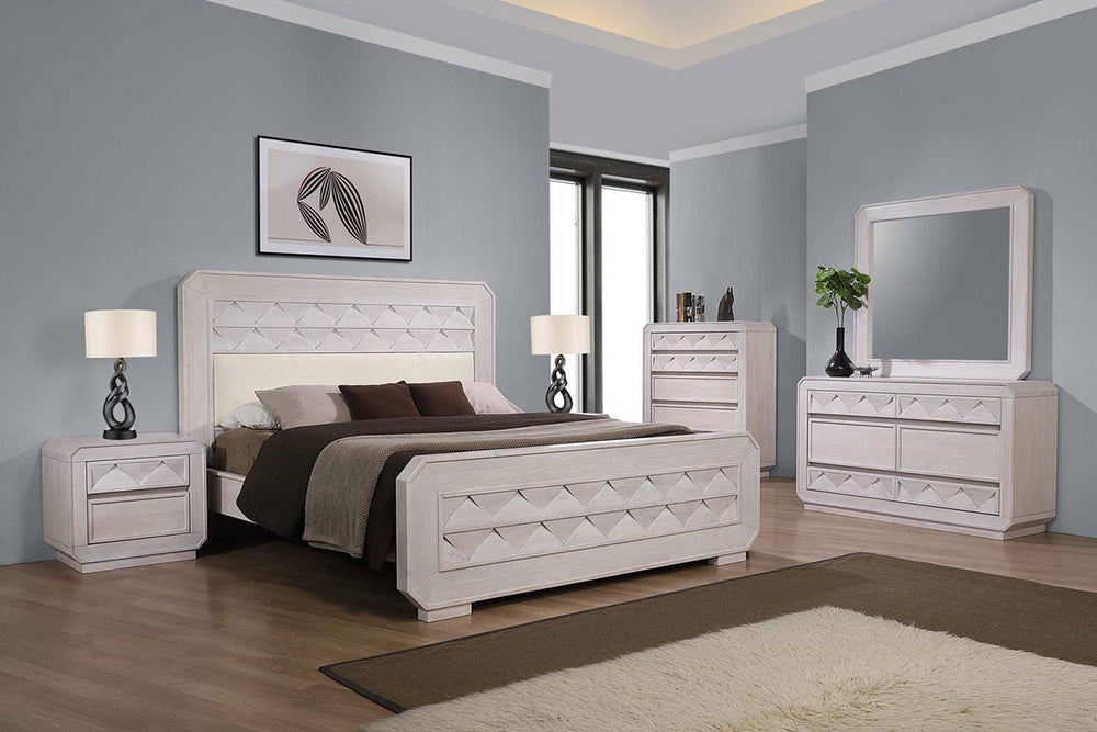 We have designed and crafted a luxurious range of bedroom sets that allow you the freedom to create your own unique, bedroom suite. The Gloria Bedroom Set will give your bedroom that luxury and exquisite look with the new and improved modern range of furniture. The 4 Piece Bedroom Set is the perfect set for creating a mature, modern bedroom suite. The clean, natural wooden tones of the Gloria 4 Piece Bedroom Set create a warm, inviting feel in any space, while the two large bedside pedestals add valuable storage space to the room. Featuring unique, intricate carvings on the headboard, baseboard as well as the dresser table.