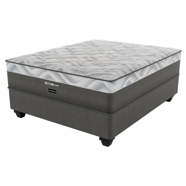 Enjoy firm, reliable comfort with the Restonic Re-Embrace Queen Bed. Designed for back sleepers and couples, it features Prime Flex Foam, dual spring support, and luxury knit fabric. Get style, support, and value in one.